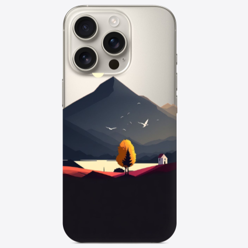 Apple iPhone 16 Pro Gri Dağ Kırmızı Renkli Silikon Telefon Kılıfı