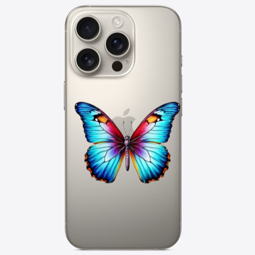 Apple iPhone 16 Pro Mavi Kelebek Koyu Yeşil Renkli Silikon Telefon Kılıfı
