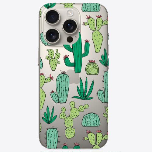 Apple iPhone 16 Pro Kaktüsler Sarı Renkli Silikon Telefon Kılıfı