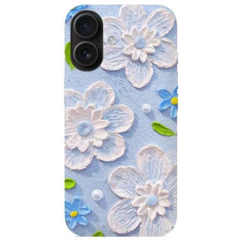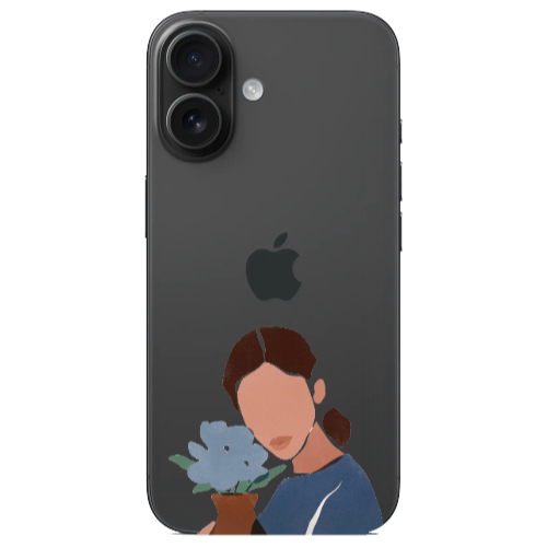 Apple iPhone 16 Beyaz Çiçek Siyah Renkli Silikon Telefon Kılıfı