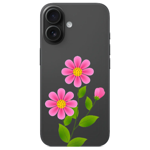 Apple iPhone 16 Pembe Çiçekler Kırmızı Renkli Silikon Telefon Kılıfı