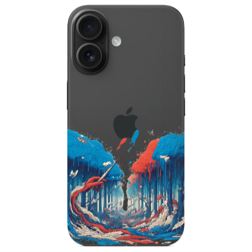 Apple iPhone 16 Yağlı Mavi Kırmızı Renkli Silikon Telefon Kılıfı