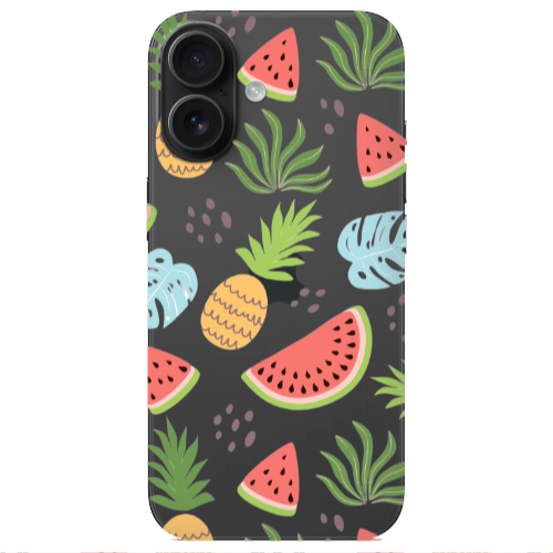 Apple iPhone 16 Karışık Meyve4 Koyu Yeşil Renkli Silikon Telefon Kılıfı