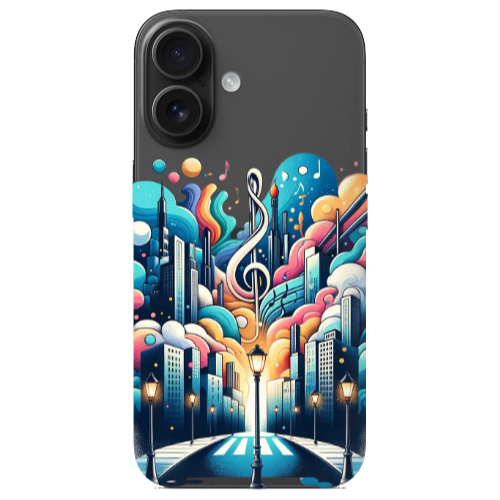 Apple iPhone 16 Müzik Sokağı Sarı Renkli Silikon Telefon Kılıfı