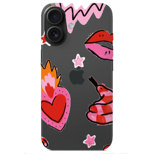 Apple iPhone 16 Kalp Muck Siyah Renkli Silikon Telefon Kılıfı