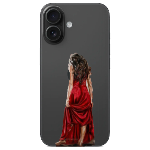 Apple iPhone 16 Kırmızı Elbise Sarı Renkli Silikon Telefon Kılıfı