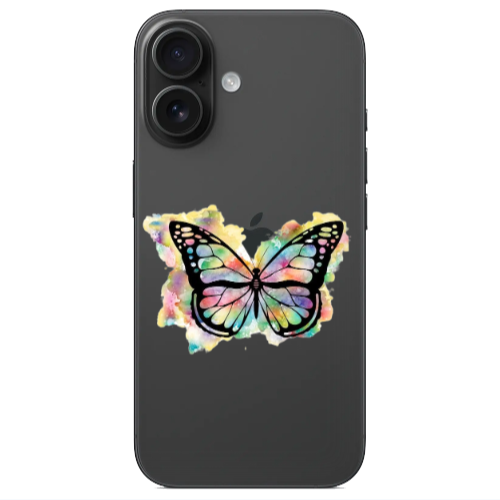Apple iPhone 16 Rengarenk Kelebek Koyu Yeşil Renkli Silikon Telefon Kılıfı