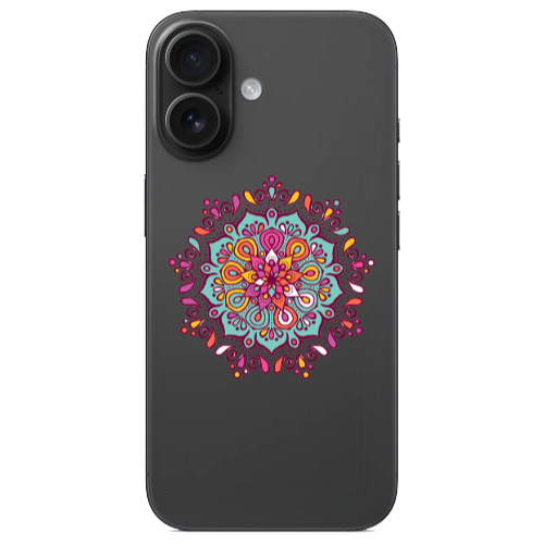 Apple iPhone 16 Renkli Yapraklar Siyah Renkli Silikon Telefon Kılıfı