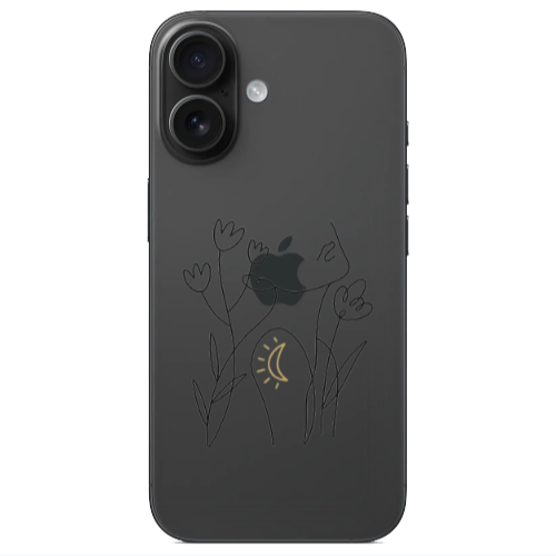 Apple iPhone 16 Bitki Siyah Renkli Silikon Telefon Kılıfı