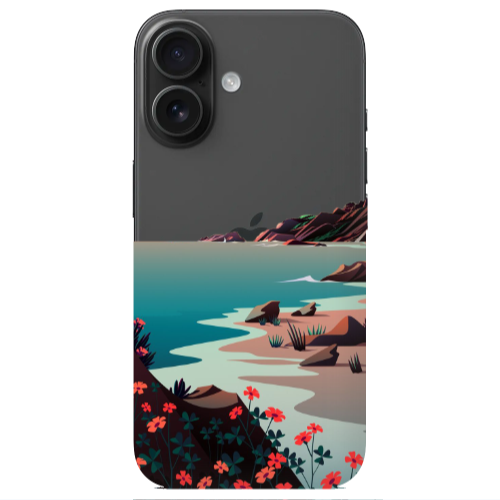 Apple iPhone 16 Göl Çiçeği Siyah Renkli Silikon Telefon Kılıfı