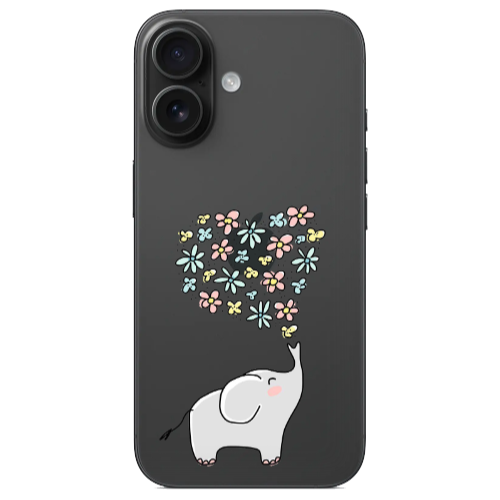 Apple iPhone 16 Fil Çiçek Siyah Renkli Silikon Telefon Kılıfı