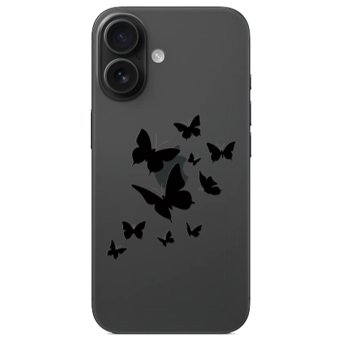 Apple iPhone 16 Siyah Kelebek Sarı Renkli Silikon Telefon Kılıfı