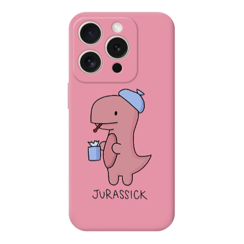 Apple iPhone 15 Pro Jurassick Pembe Renkli Silikon Telefon Kılıfı