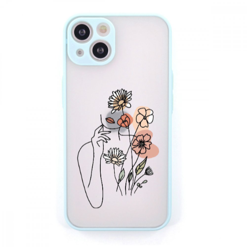 Apple iPhone 13 Mini Kadın Çiçek 2 Turkuaz Hux Telefon Kılıfı
