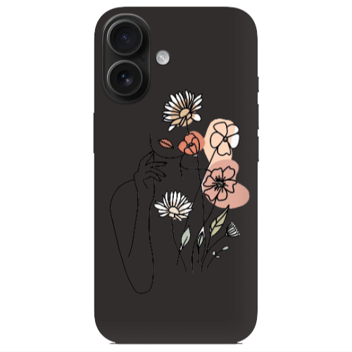 Apple iPhone 16 Kadın Çiçek Siyah Renkli Silikon Telefon Kılıfı