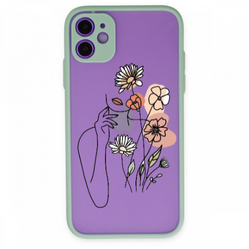 Apple iPhone 11 Kadın Çiçek Turkuaz Hux Telefon Kılıfı