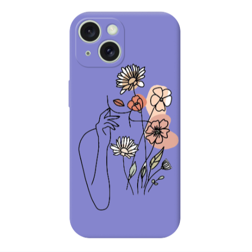 Apple iPhone 15 Kadın Çiçek Lila Renkli Silikon Telefon Kılıfı