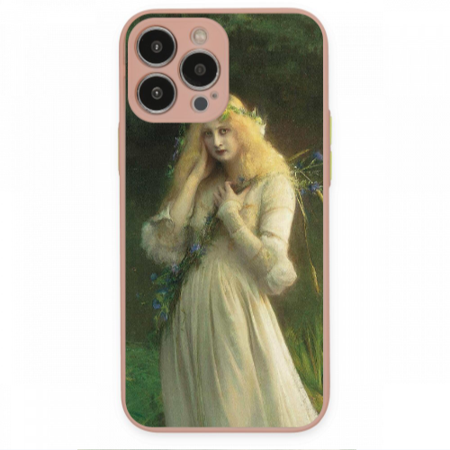Apple iPhone 14 Pro Max Kadın Sanat Pembe Hux Telefon Kılıfı