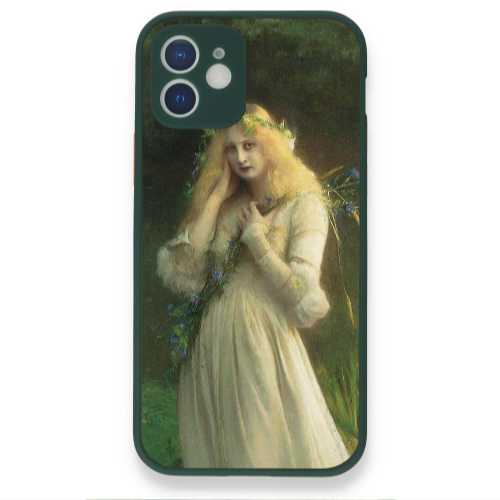 Apple iPhone 12 Mini Kadın Sanat Koyu Yeşil Hux Telefon Kılıfı