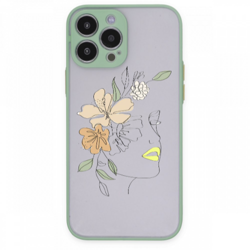 Apple iPhone 13 Pro Max Kadın Silüet Çiçek Turkuaz Hux Telefon Kılıfı