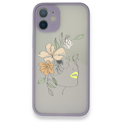 Apple iPhone 11 Pro Max Kadın Silüet Çiçek Lila Hux Telefon Kılıfı