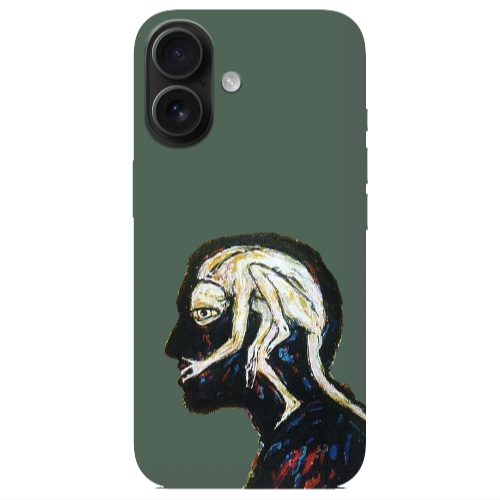 Apple iPhone 16 Plus Kafamdaki Canavar Koyu Yeşil Renkli Silikon Telefon Kılıfı