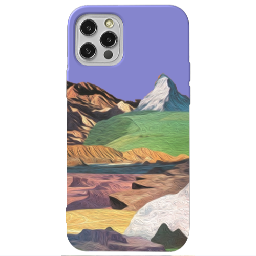 Apple iPhone 12 Pro Kahve Dağ Lila Renkli Silikon Telefon Kılıfı