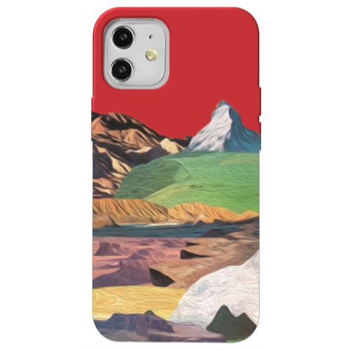 Apple iPhone 12 Mini Kahve Dağ Kırmızı Renkli Silikon Telefon Kılıfı