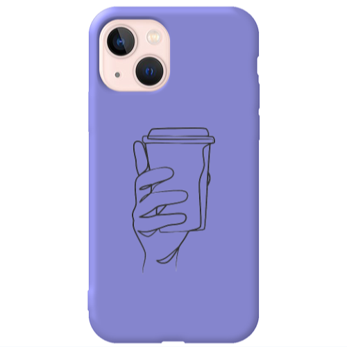 Apple iPhone 13 Mini Kahve El Lila Renkli Silikon Telefon Kılıfı