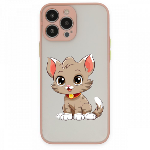 Apple iPhone 13 Pro Kahve Kedi Pembe Hux Telefon Kılıfı