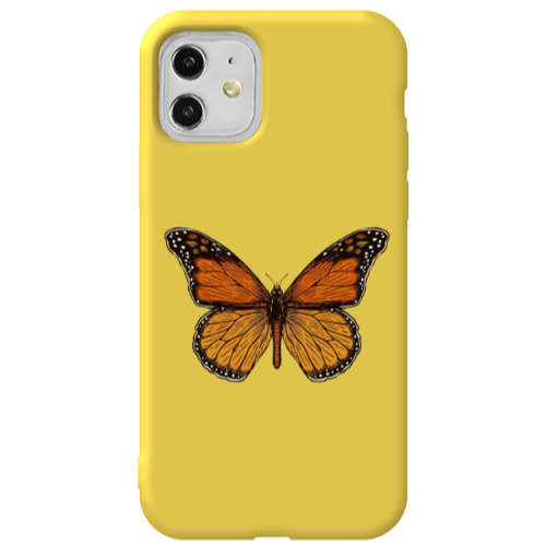 Apple iPhone 11 Kahve Kelebek Sarı Renkli Silikon Telefon Kılıfı