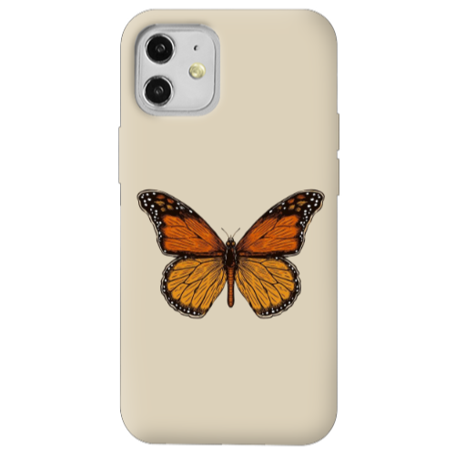 Apple iPhone 12 Kahve Kelebek Krem Renkli Silikon Telefon Kılıfı