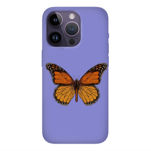 Apple iPhone 14 Pro Kahve Kelebek Lila Renkli Silikon Telefon Kılıfı