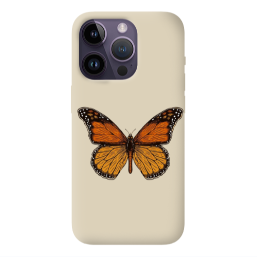 Apple iPhone 14 Pro Max Kahve Kelebek Krem Renkli Silikon Telefon Kılıfı