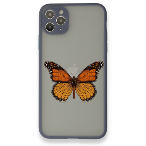 Apple iPhone 12 Pro Kahve Kelebek Gri Hux Telefon Kılıfı