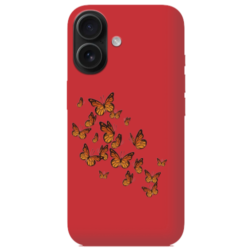 Apple iPhone 16 Plus Kahve Kelebekler Kırmızı Renkli Silikon Telefon Kılıfı