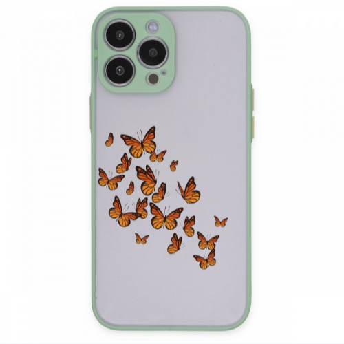 Apple iPhone 13 Pro Kahve Kelebekler Turkuaz Hux Telefon Kılıfı