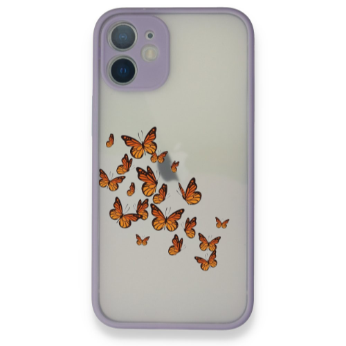 Apple iPhone 12 Mini Kahve Kelebekler Lila Hux Telefon Kılıfı