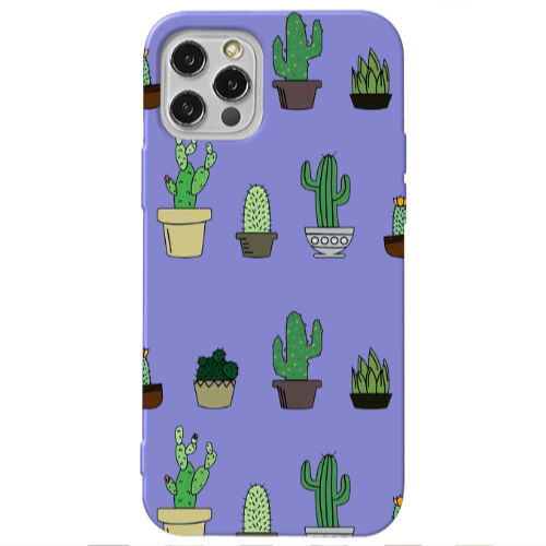 Apple iPhone 12 Pro Kaktüsler 3 Lila Renkli Silikon Telefon Kılıfı