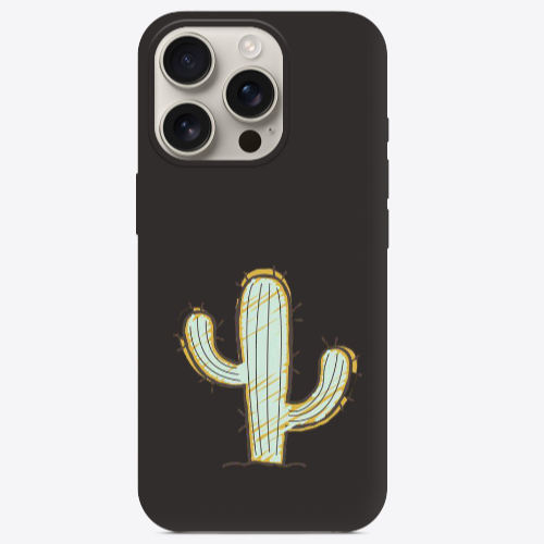 Apple iPhone 16 Pro Kaktüsler 4 Siyah Renkli Silikon Telefon Kılıfı