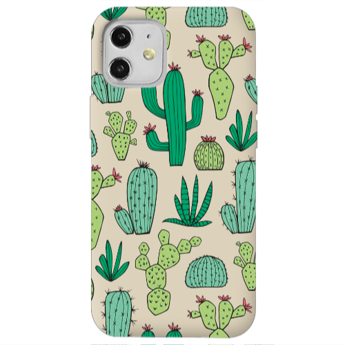 Apple iPhone 12 Kaktüsler Krem Renkli Silikon Telefon Kılıfı