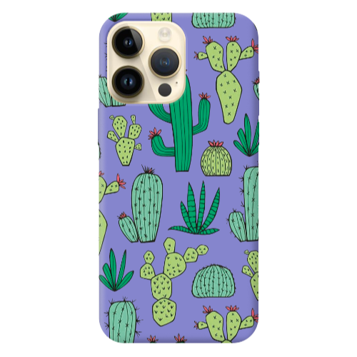 Apple iPhone 13 Pro Max Kaktüsler Lila Renkli Silikon Telefon Kılıfı