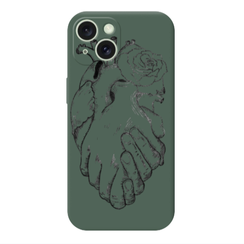 Apple iPhone 15 Kalbimiz Bir Koyu Yeşil Renkli Silikon Telefon Kılıfı