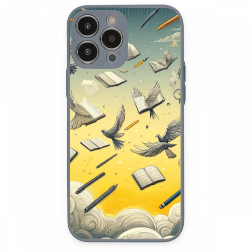 Apple iPhone 14 Pro Max Kalem Kuş Gri Hux Telefon Kılıfı