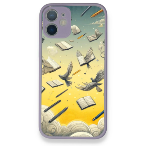 Apple iPhone 12 Mini Kalem Kuş Lila Hux Telefon Kılıfı