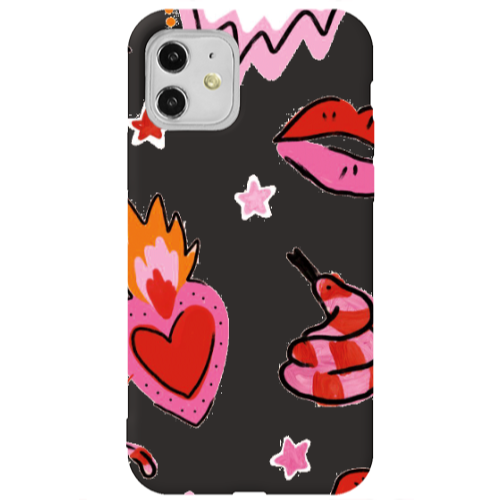 Apple iPhone 11 Kalp Muck Siyah Renkli Silikon Telefon Kılıfı