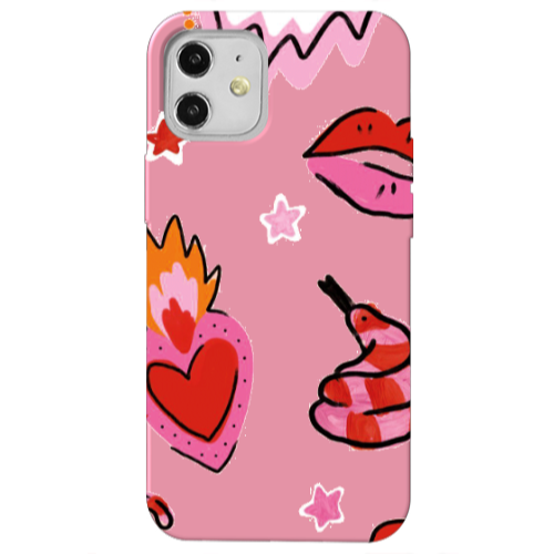 Apple iPhone 12 Kalp Muck Pembe Renkli Silikon Telefon Kılıfı