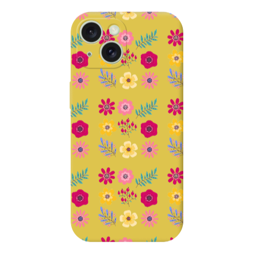 Apple iPhone 15 Plus Karışık Çiçek2 Sarı Renkli Silikon Telefon Kılıfı