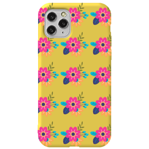 Apple iPhone 11 Pro Karışık Çiçek3 Sarı Renkli Silikon Telefon Kılıfı