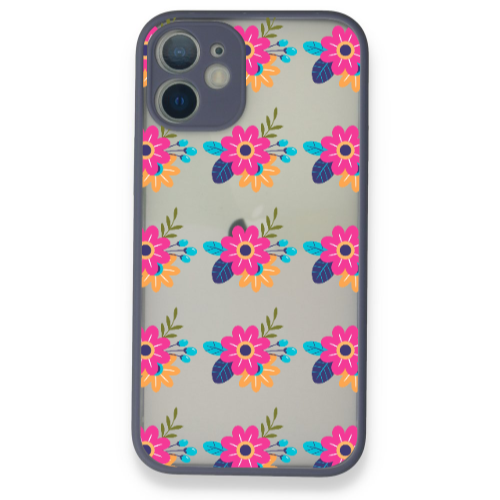 Apple iPhone 12 Karışık Çiçek3 Gri Hux Telefon Kılıfı